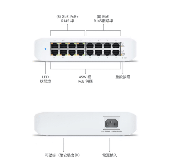 15W(不含 PoE 輸出) 60W(含 PoE 輸出)
